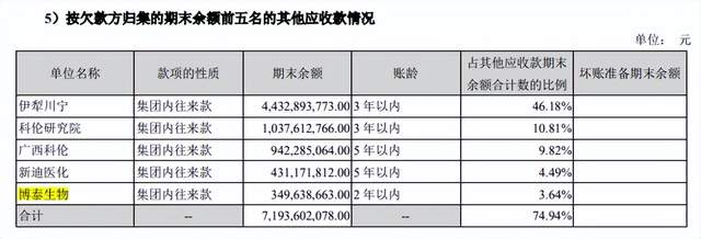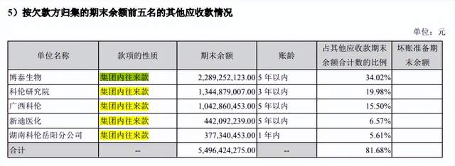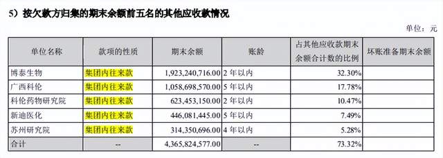 2019年至2021年,按其他应收账款计,科伦博泰还被划入按欠款方归集的期末余额的前五。各报告期末,科伦药业对科伦博泰的应收账款余额达3.50亿元、19.23亿元、22.89亿元。