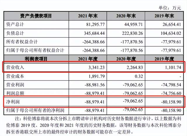 而同期,科伦博泰营收则只有1101.74万元、2264.83万元、3341.23万元;净利更是连续亏损-8.01亿元、-7.91亿元、-8.90亿元。三年间总营收不足1亿,亏损却超24亿,俨然是一吞金兽。