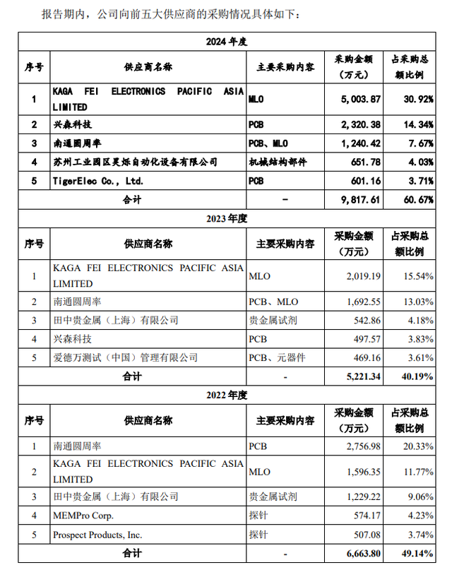 对此,强一股份解释称,转向圆周率采购PCB等产品是出于供应链安全及快速交付考量,因“中国大陆仅有少数内资企业可实现半导体测试板快速交付”。