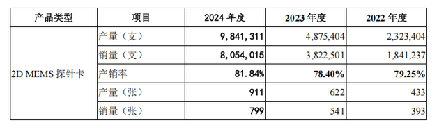 做大做强之心溢于言表,也对资本胃口。考量在于,2022年—2024年,强一股份2D MEMS探针卡产销率分别为79.25%、78.40%、81.84%,远没有达到供不应求。期间总销量为393张、541张、799张,而扩产计划中的5000张产能,是现有销量的数倍,是否步子太大了些?一旦后续去化不利、衍生风险又知多少呢?