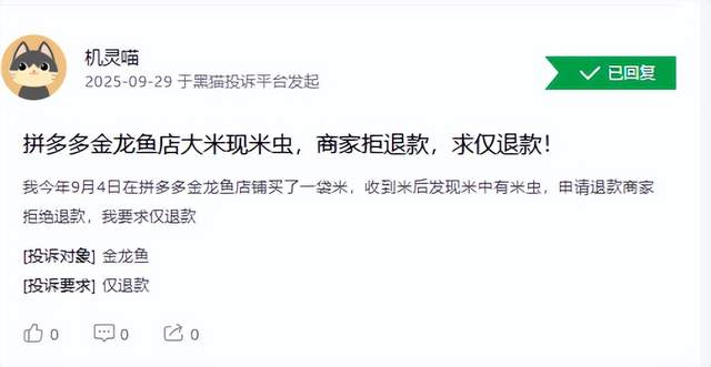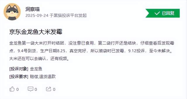 真相如何,依然留给时间来作答。能肯定的是,在食品界品控是很重要的事情,金龙鱼捍卫权益、兰世立一再死磕都符合逻辑,抛开最终如何收场,这也是企业一个自身审视、改善的契机。拉长维度看,著名打假人王海曾质疑公司大米产品“以次充好”。截至2025年11月27日,黑猫投诉平台显示“金龙鱼”相关累计投诉157条,主要涉及产品质量、服务等质疑。