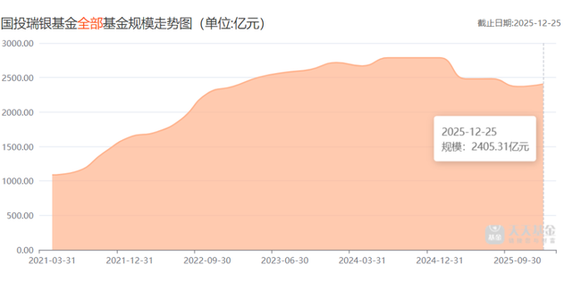 目光回到国投瑞银,产品结构亦有优化急迫性。天天基金网数据显示,截至2025年12月25日总规模为2405.31亿元,较同年三季度的2786.16亿元不增反降。其中,指数型基金规模仅有68.04亿元,与行业的万马奔腾形成鲜明对比。Wind数据显示,截至2025年12月31日,国内ETF市场总规模破6万亿大关。其中规模最大的产品类型为股票型ETF,占比达63.8%。
