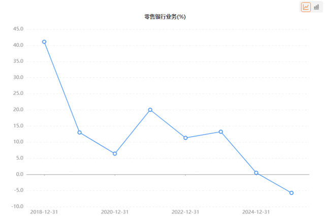 考量在于,零售业务利润表现差强人意。据历年财报及choice数据,2018年该业务贡献利润168.55亿元,占比超41%。2019、2020年连续两年下滑,降至6.44%;2021年反弹至20.03%,之后再度波动,2025年占比甚至跌至-5.71%,意味着该年零售业务已陷亏损。