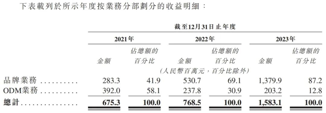2021年至2023年,卡罗特销售自有品牌“卡罗特”产品的品牌业务,营收占比由2021年的41.9%增至2023年的87.2%,同期ODM业务的营收占比则由58.1%降至12.8%。
