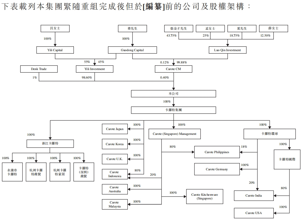 截至招股书披露日,章国栋、吕伊俐夫妇通过Yili Investment持股98.6%,Denk Trade持股1%,Carote CM持股0.4%。