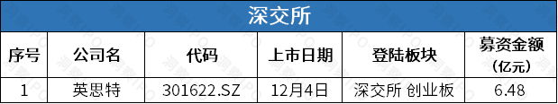 12月2日-12月8日,上交所科创板有1家公司上市;深交所创业板有1家公司上市。