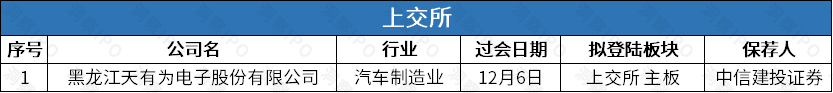 12月2日-12月8日,上交所主板有1家公司过会;深交所无公司过会。
