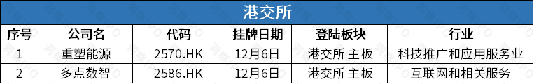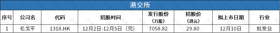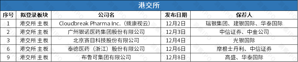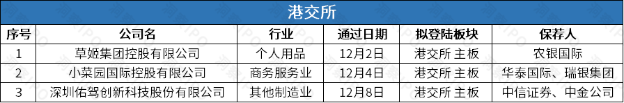 12月2日-12月8日,港交所有3家公司通过聆讯。