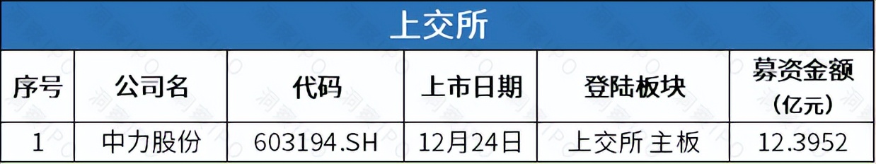 12月23日-12月29日,上交所主板有1家公司上市;深交所无公司上市。