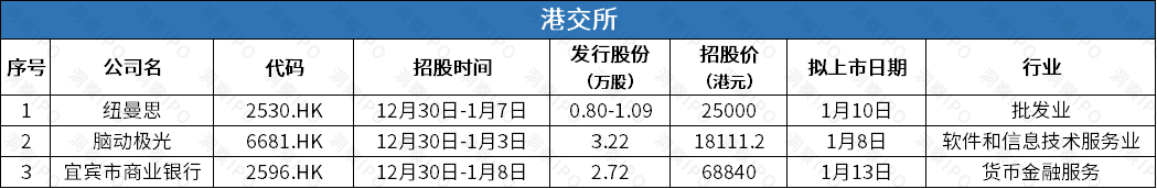 12月23日-12月29日,港交所有3家新股招股。