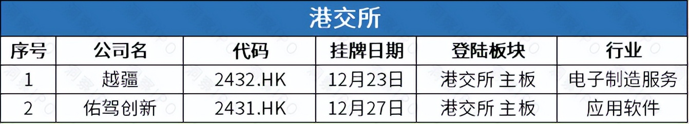 12月23日-12月29日,港交所有2家公司上市。