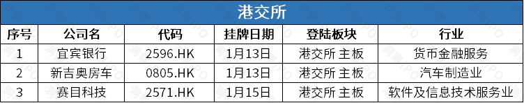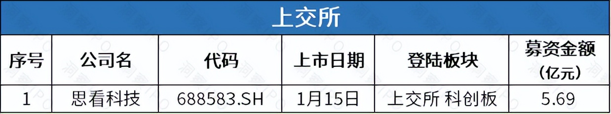 1月13日-1月19日,上交所科创板有1家公司上市;深交所创业板有1家公司上市。