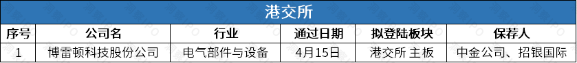 4月14日-4月20日,港交所有1家公司通过聆讯。