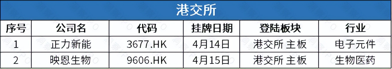 4月14日-4月20日,港交所有2家公司上市。