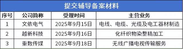 2025年9月15日,文依电气向上海证监局报送北交所上市辅导备案申请,辅导机构为东方证券。