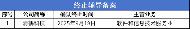 9月15日-9月21日,北交所有1家公司终止辅导备案。