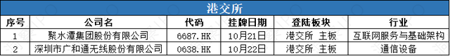 10月21日-10月27日,港交所主板有2家公司上市。