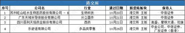 10月20日-10月27日,港交所主板有4家公司通过聆讯。