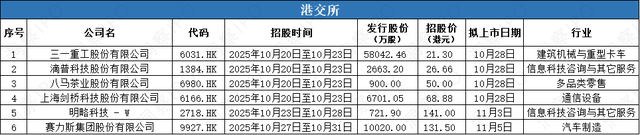 10月21日-10月27日,港交所有6家公司新股招股,其中4家已完成招股。
