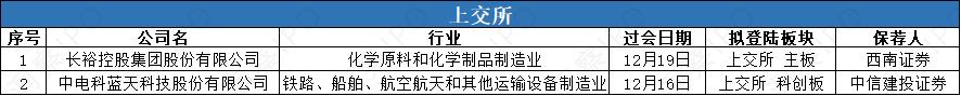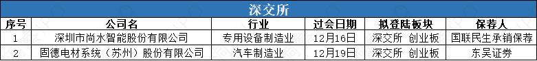 12月16日-12月22日,上交所主板有1家公司过会,科创板有1家公司过会;深交所创业板有2家公司过会。