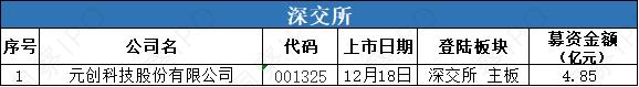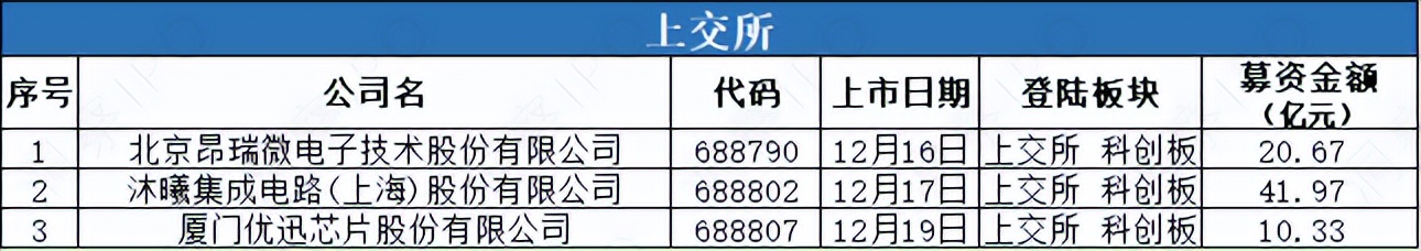 12月16日-12月22日,上交所科创板有3家公司上市;深交所有1家公司上市。