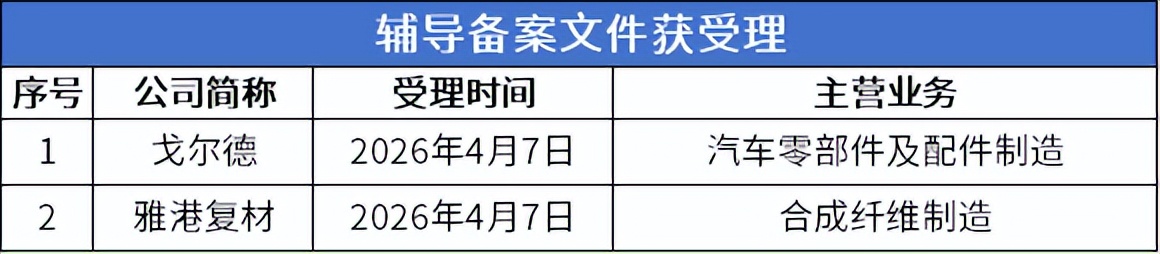 4月6日-4月12日,北交所有2家公司辅导备案文件获受理,进入辅导期。
