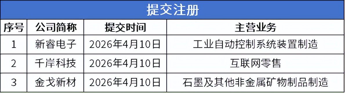4月6日-4月12日,北交所有3家公司提交注册。