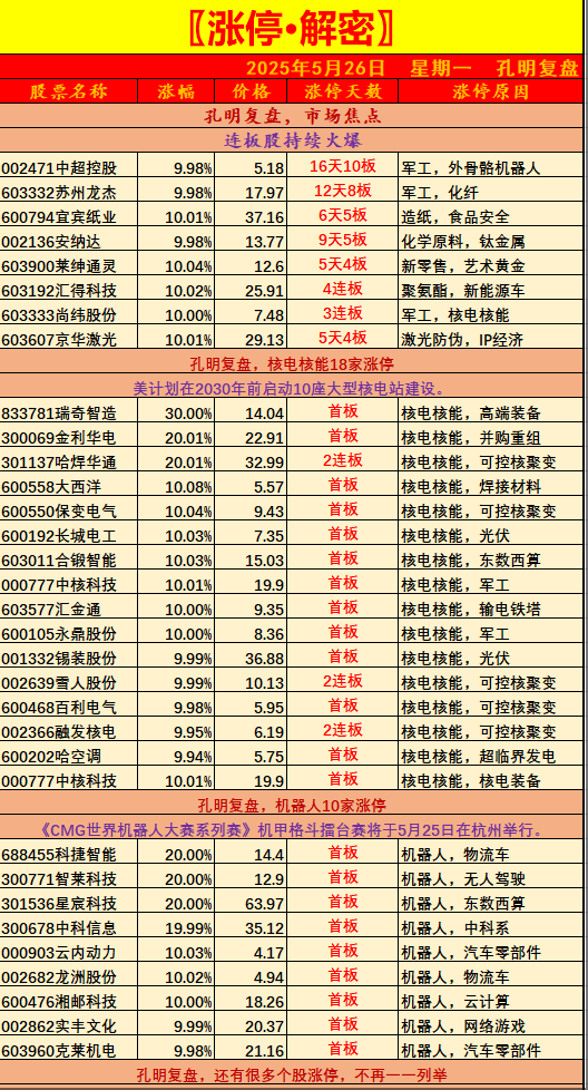 机器人板块出现异动拉升。受此影响,孔明监测到今天科捷智能、智莱科技、星宸科技、中科信息、信邦智能、云内动力、龙洲股份、湘邮科技、实丰文化、克来机电、融发核电等个股最高涨10%以上。