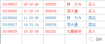 最后,恭喜雪羿战队在今日盘中顺利完成了八月份超短获利超过100%战绩。本周一,雪羿战队获利2%出局特力A,绿盘低吸深大通。本周二获利17%出局深大通之后空仓。本周三绿盘低吸九鼎新材。本周四获利6%出局九鼎新材之后空仓(这一笔没卖好,还是对市场认知有不足)。雪羿战队每日仅仅布局唯一一支实盘操作的个股,从买入到出局实时公布,绝不存在说一堆股谁涨吹谁的丑陋行为。