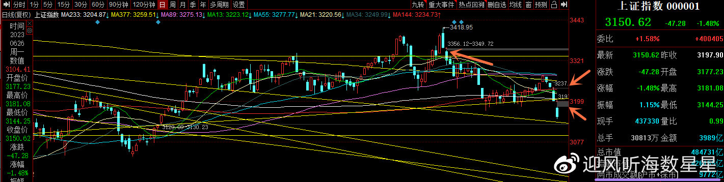 本周一A股走出了三大指数全线大跌,个股也普跌的“黑周一”盘面,并不意外。首先,在端午节前最后一个交易日,上周三的收评标题《季度末A股调整概率大再次上演,下周关注中线多体系共振强支撑位》的后半句,听海已经明确地说了“下周关注中线多体系共振强支撑位”,而在该文的正文最后一段里,也说了上周三这个变盘时间窗口里,大盘是选择了短线下行。