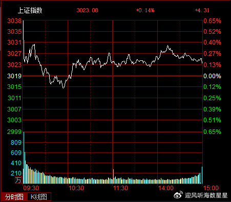 高开后的大盘,是触及了前述的多体系共振强压力位(这个话题下面技术章节再展开细说),开盘后的头一个小时,三大指数全线低走。临近10点半时,大盘的日内低点3013.93点,是回踩到了周二尾盘突破的13日均线以及跟随上移的5日均线交汇处。随后大盘小幅反弹后横盘震荡直至收盘。截至收盘,大盘小涨0.14%,深成指小跌0.38%,创业板指小跌0.46%。