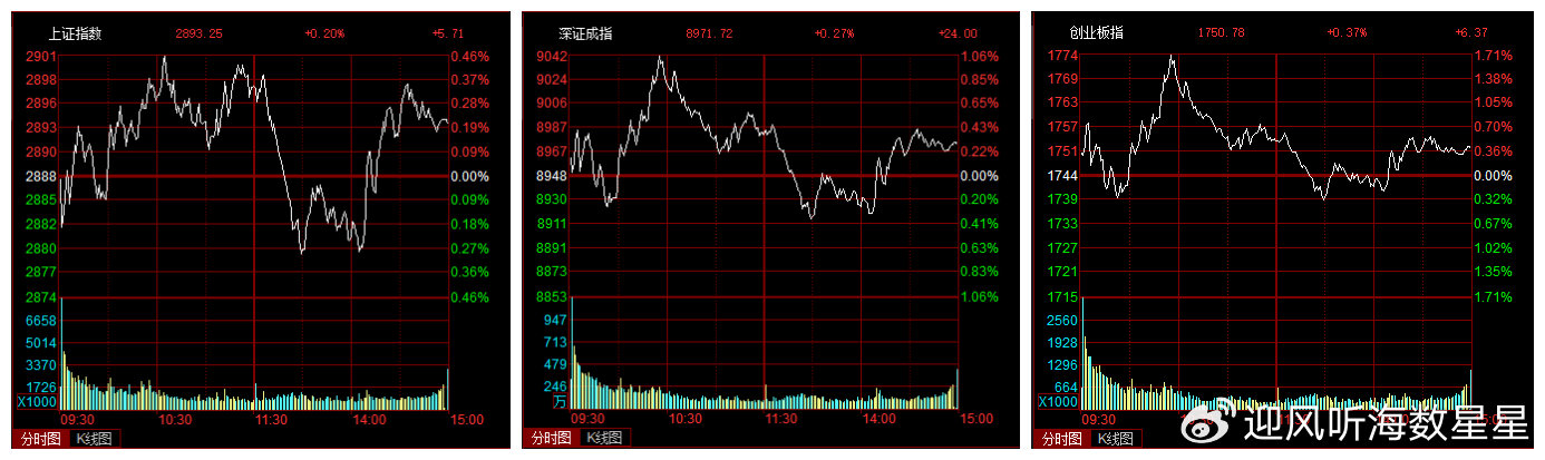 周二早盘,A股三大指数开盘小幅涨跌互现,沪市大盘低开0.01%,深成指高开0.15%,创业板指高开0.31%。周二大盘的走势要描述起来相对简单,就是大盘在2900点下方缩量窄幅(全天振幅仅为0.77%)震荡。如下面的分时图所示,大盘全天三次冲击2900点整数关口,都由于量能明显不济,或者说做多动能严重不足,未能形成突破,日内最高点正是2900.73点。截至收盘,大盘小涨0.20%,深成指小涨0.27%,创业板指小涨0.37%。