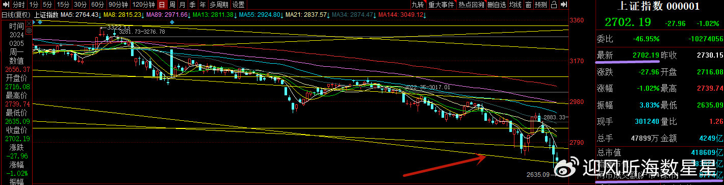上周五的标题之所以会提到“关注周末消息面”,原因就是该文里,听海再次重申了自2017年1月16号起,最近七年多时间里,说过N多次的那句话:“大盘等大型指数不像个股,常规情况下,也就是说没有重磅级别的利好(利空)的情况下,是不支持尖底(尖顶)的”。在最近不足20天时间里,听海提到这句话也是足足有四次之多了,分别是:大前周五(1月19号)、前周一(1月22号)、上周三(1月31号)和上周五(2月2号),确实是有点唐僧的感觉了,呵呵