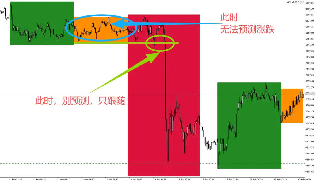 记住两个字:跟随。不分析、不预测、仅跟随!价格朝着哪边发展,我们就往哪个方向交易,没有任何秘密可言!