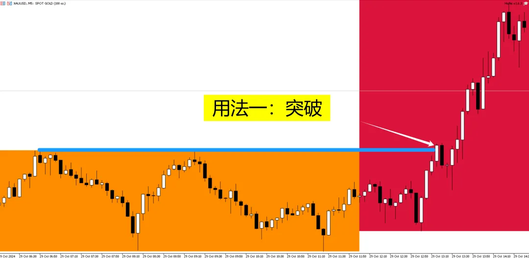 【用法一】顺势突破。上破则做多,下破则做空。