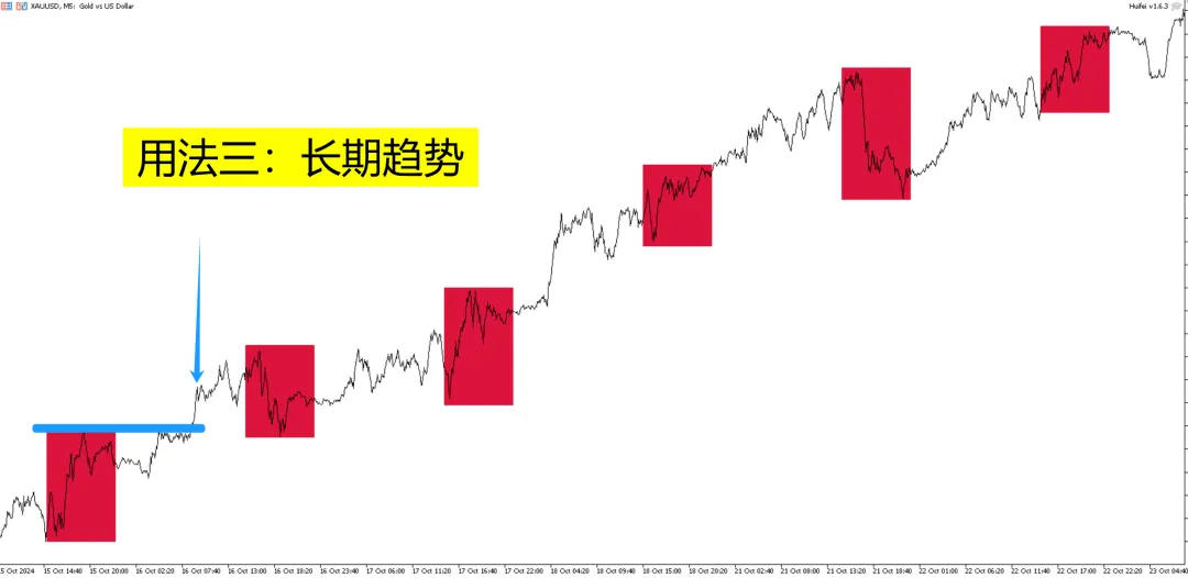 【用法三】长期趋势。仅观察美盘区间高(低)点,突破顺势做多,反之做空。
