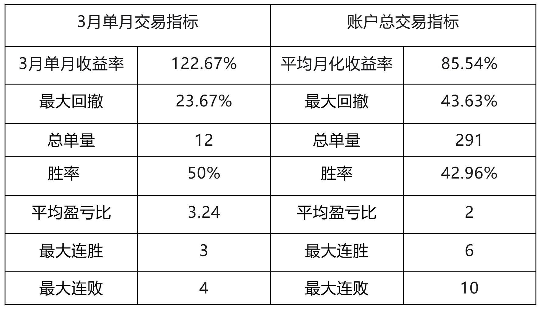 该账户也是汇飞量化时区/金字塔EA中3月份表现最亮眼的账户,3月收益率达到122.67%。虽然总下单量少,但是通过50%的胜率,以及3.24:1的高盈亏比,捕捉到了大行情。适合对盈亏比要求较高,对下单量要求不高的投资者。