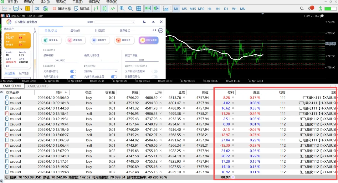 五、智能化。止盈止损与加仓间距根据行情智能调节。