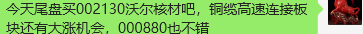 也就是说大盘是不用担心的,那么个股呢?预计会普涨吧,而不是像今天这样银行保险证券股涨,大盘涨但是个股超3700只下跌。今天四十来只个股涨停,没有了过去的喧嚣,十来只个股跌停,也算平稳。有几只个股的跌停值得一提,实益达一度被市场寄予厚望,号称按照玄学能涨十一连板,但是上周五开盘低于预期,然后平开后大跳水直奔跌停,今天跌停开盘继续跌停,看来跨年龙真的不能轻易预测,福龙马连续涨停也颇有玄学意味,上周五炸板虽然没有出现天地板但是今天大单封住跌停 。电光科技地天板非常吸引眼球上周五T字板,今天又是涨停开盘,尾盘大跳水跌停报收,不过尽管竞价跌停但是感觉明天很可能会有资金去尝试做反包,反包失败再跌停不迟,唉。两连板创新高尝试二波的南京化纤也出现连续跌停,让人唏嘘。总之,主板连板股的核按钮随时可能出现,一定要提防。前段时间主板连板股情绪高涨,创业板个股表现一般,不过最近创业板趋势股的表现很是抢眼,博创科技、兆龙互联、星宸科技、科泰电源、威士顿等股都有不错表现,除了威士顿是大金融,其它都属于AI范畴。今天空间板降到了四连板,中百集团、东百集团是大消费,哈森股份是消费电子和机器人。今天大消费、AI仍有部分个股涨停,只是热度不够。大消费,抖音随心送功能送出十亿元团购券礼物,百货商场类个股集体走强,龙头自然是两个四连板的,还有百大集团今天反包四天三板。上海算力,到2025年底,建成世界级人工智能产业生态。上海建科、数据港一字板,创业板安诺其涨停。还有消息面上,央视《大国基石》新一期用一集来讲算力基建。有“算力即国力”、“算力是推动社会进步的关键引擎”等提法。数据中心、供电方面,顺纳股份一字板三连板,尾盘受到电光科技影响差点开板。中恒电气大跳水不过竞价被抢盘,从竞价前的10.89到11.5收盘。另外,尾盘沃尔核材也受影响不断走低,竞价也被抢盘。我们尾盘参与了一下。尾盘群里说道: