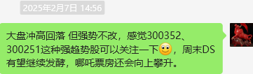 意思就是北信源是DS后排,但是由于周末继续发酵所以今天会有所表现,而光线传媒投资的哪吒2有望冲击百亿票房,上周五强势整理后也会有表现机会。从结果来看北信源高开高走,早盘冲高虽然股价创近期新高但是止步于10%,所以应该逢高坚决卖出,光线传媒午后发力强势涨停强势逼人,恭喜参与的朋友。
