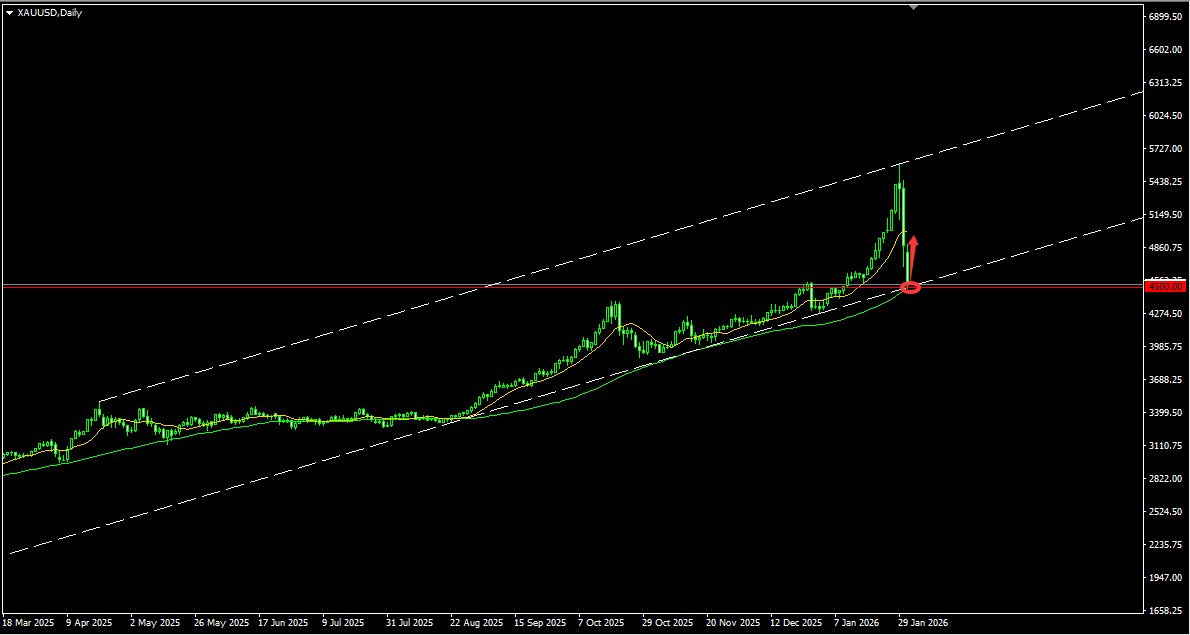 市场情绪一夜之间从“狂热”切换至“恐慌”,这恰恰是极端行情末端的典型特征。技术图表上,疯狂过后终将回归理性轨道。目前,日线图清晰的上行通道下轨支撑已上移至4500整数关口一线,此处汇聚了中期趋势线、心理关口及前期突破平台等多重技术意义。在牛市的核心逻辑(货币信用、资产配置、央行行为)未被证伪前,首次触及如此重要的通道支撑,往往具备强大的技术吸引力。