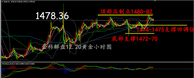 从小周期来看,黄金日内的低位支撑看1475附近,亚欧盘回落触及还是可以做多,今晚美盘还是关注1482/1485高点能否有效破位!