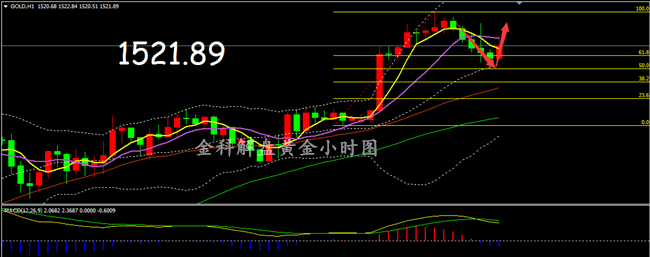 我们可以看到黄金几乎是以通道的形式展开了调整,而这也导致了黄金今日在突破后的动能不足,其实这点和上周二当时黄金突破1488后遇阻1493有点类似,不过本次的黄金上涨的力度更强。