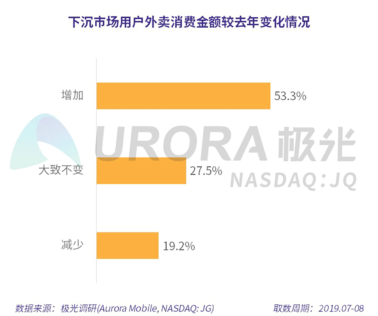 极光的统计结果显示,超五成用户外卖消费有提高,外卖消费持续扩大。下沉市场用户外卖消费持续扩大,53.3%的用户今年在外卖上的消费金额较去年有提高。