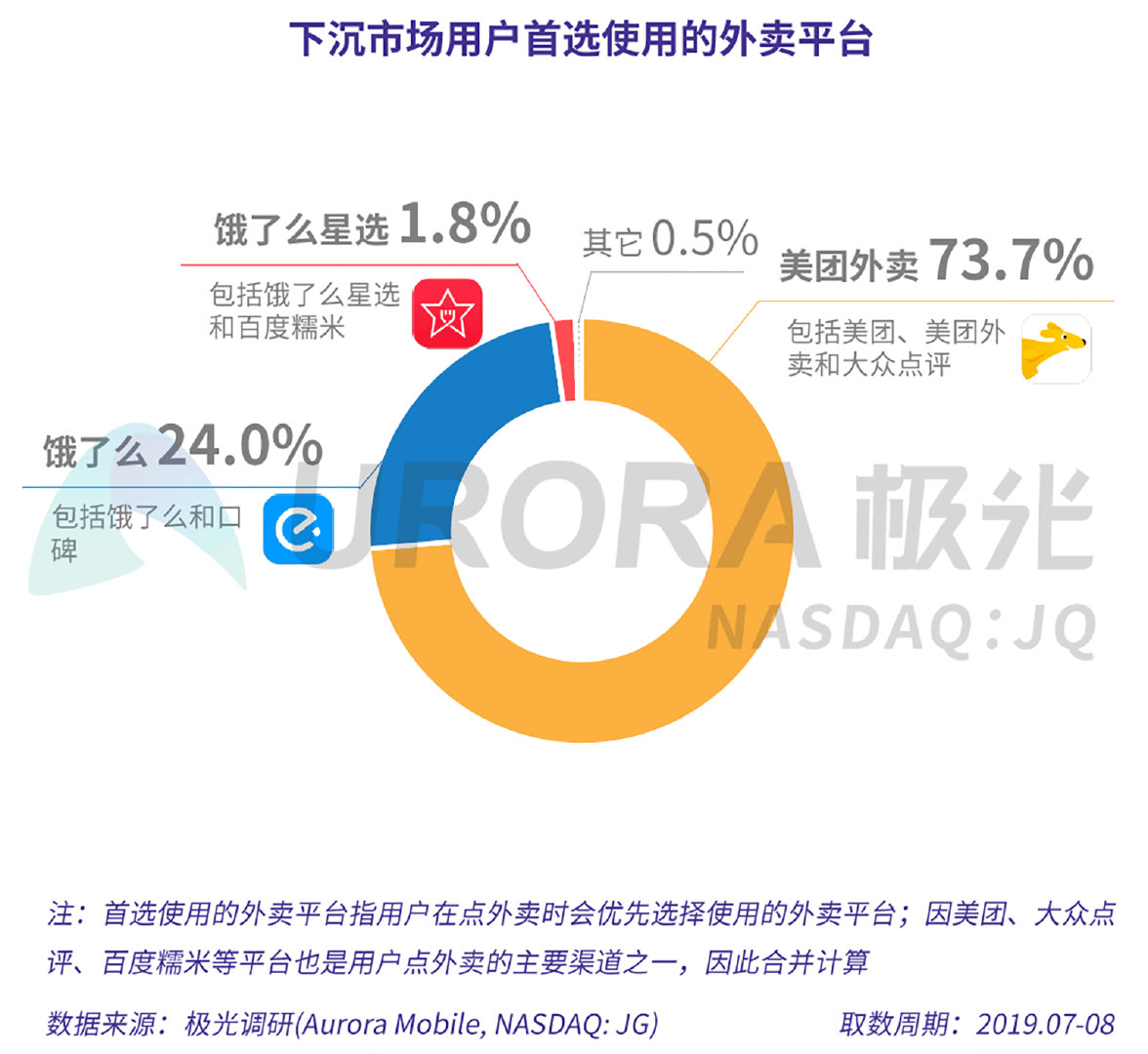 2. 下沉市场外卖行业格局驱稳,美团外卖和饿了么成最优选: