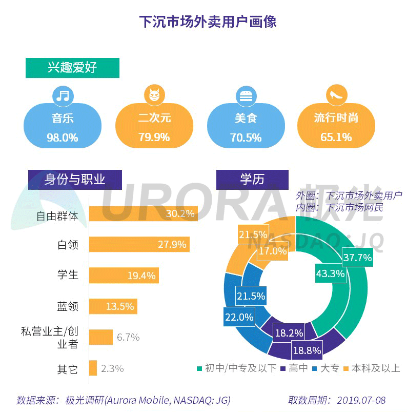 有钱又有闲,小镇青年已经实现了外卖自由?极光(Aurora Mobile,NASDAQ:JG)发布《外卖行业下沉市场分析报告》,从下沉市场外卖行业分析、下沉市场外卖竞争分析、下沉市场外卖用户画像及外卖商家分析等多方面解读下沉市场外卖行业现状。