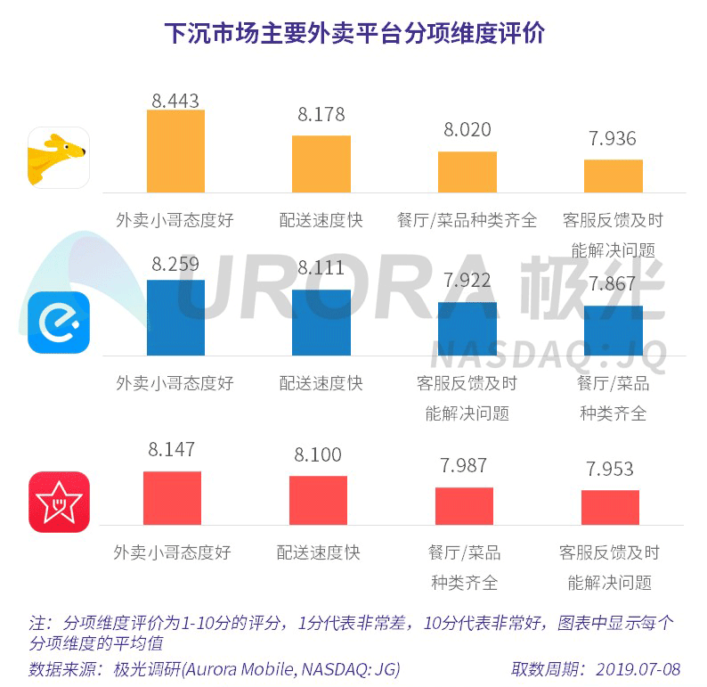 下沉市场主要外卖平台分项维度评价