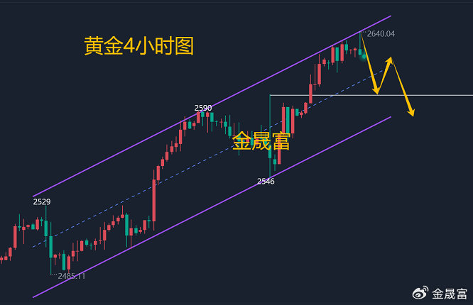 黄金1小时高位大阴下跌,乌云盖顶,黄金短线已经见顶,黄金暂时不多了,黄金突破新高之后快速回跌破位,那么这个突破就是假突破,小时线是明显看跌吞没,大阴线直接从高空砸下来,一根阴线直接覆盖一天的涨幅,这是空军的强势,而且k线从均线上方开始发力,直接击穿支撑线,就不能轻易追多了;继续考虑高位空,黄金午后现价2632继续空起来。准备一泻千里?综合来看,今日黄金短线操作思路上金晟富建议反弹做空为主,回调做多为辅,上方短期重点关注2635-2640一线阻力,下方短期重点关注2600-2602一线支撑,各位朋友一定要跟上节奏。要控制好仓位及止损问题、严格设止损,切勿抗单操作。具体点位以盘中实时为主,欢迎前来体验,交流实时行情,进群关注实时单。