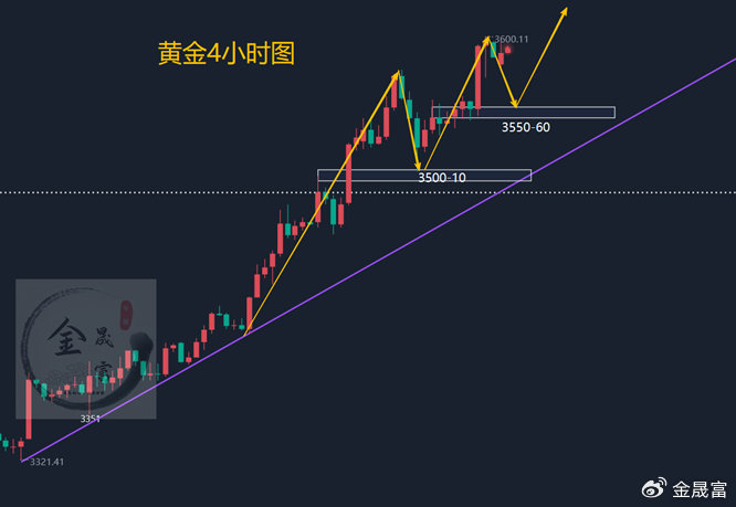 今日上方阻力方面,3578高点压制已经破位,后续可进一步看向3610附近,该位置是黄金自3120启动上涨以来,由高低点构建的上涨通道当前对应的阻力区域,这也是我们本周需要关注的位置。但是就早上的走势来看,很大概率到达不了,黄金有可能直接获利回吐,回到非农起始点也不是没可能。日内操作上,反弹3597附近可以直接参与空单,防守3605,目标30-50个点。综合来看,今日黄金短线操作思路上金晟富建议回调做多为主,反弹做空为辅,上方短期重点关注3600-3610一线阻力,下方短期重点关注3550-3560一线支撑,各位朋友一定要跟上节奏。要控制好仓位及止损问题、严格设止损,切勿抗单操作。具体点位以盘中实时为主,欢迎前来体验,交流实时行情,进群关注实时单。