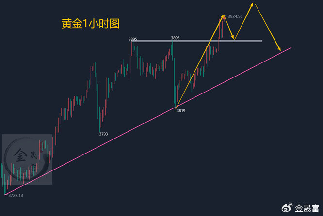 从技术面来看,本周的强弱关键点在3820,趋势关键点在3750,也就是说,不破3820一定是强势上涨,不破3750就不考虑多空趋势转变。 对于日内行情而言,黄金早间直接破位3900,目前最高在3920,原则上是看涨,但不能追涨,下方支撑在3890,3895区间,亚欧盘有可能直接上涨,但绝对不追多,还是等回落做稳健的多单才能安心,如果全盘给出关键支撑点的机会,就可以顺势做多,上方再看3920,甚至3950更高点。综合来看,今日黄金短线操作思路上金晟富建议回调做多为主,反弹做空为辅,上方短期重点关注3925-3930一线阻力,下方短期重点关注3890-3895一线支撑,各位朋友一定要跟上节奏。要控制好仓位及止损问题、严格设止损,切勿抗单操作。具体点位以盘中实时为主,欢迎前来体验,交流实时行情,进群关注实时单。